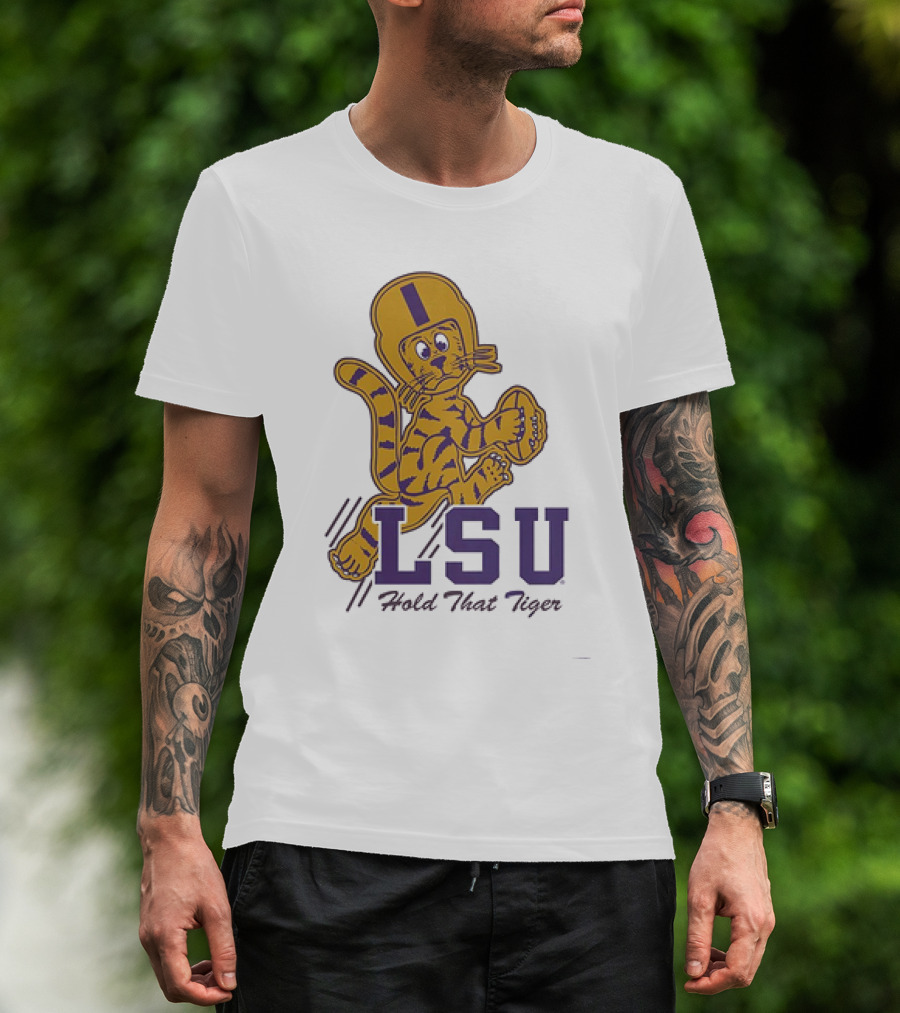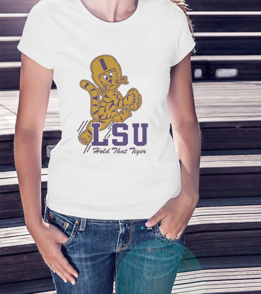 The LSU Hold That Tiger Football Mascot T-shirt is designed for everyday wear and a consistent fit. Fabric is pre-shrunk ring-spun cotton with durable stitching. See the size chart below for exact measurements.