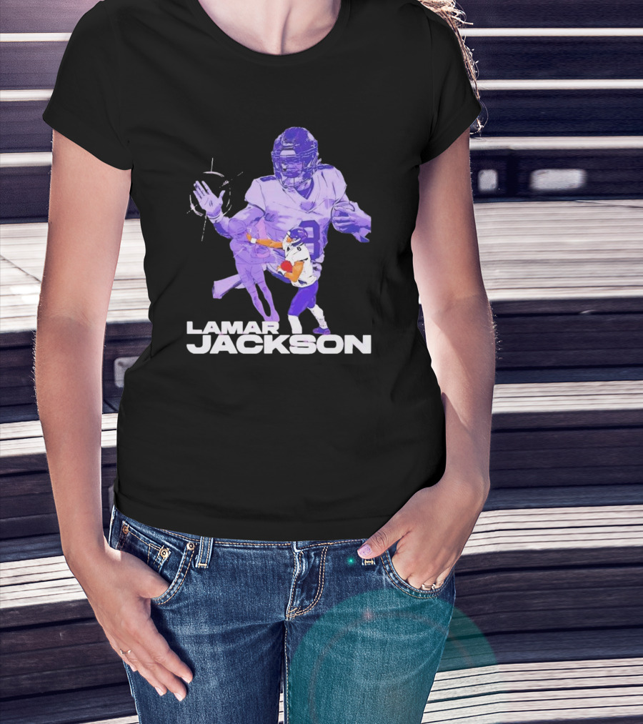 Lamar Jackson Baltimore Ravens NFL Stiff Arm Dynamic Action Play T-Shirt