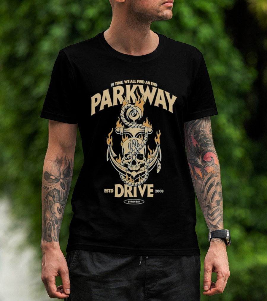 Parkway Drive In Time We All Find An End Skull Anchor Estd 2003 Byron Bay T-Shirt