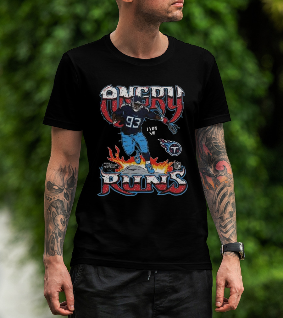 The Von SW Angry Runs Tennessee Titans NFL Good Morning Football Charcoal T-shirt is designed for everyday wear and a consistent fit. Fabric is pre-shrunk ring-spun cotton with durable stitching. See the size chart below for exact measurements.