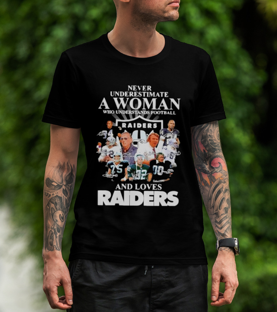 Never Underestimate A Woman Who Understands Football And Loves Raiders Players And Signatures T-Shirt