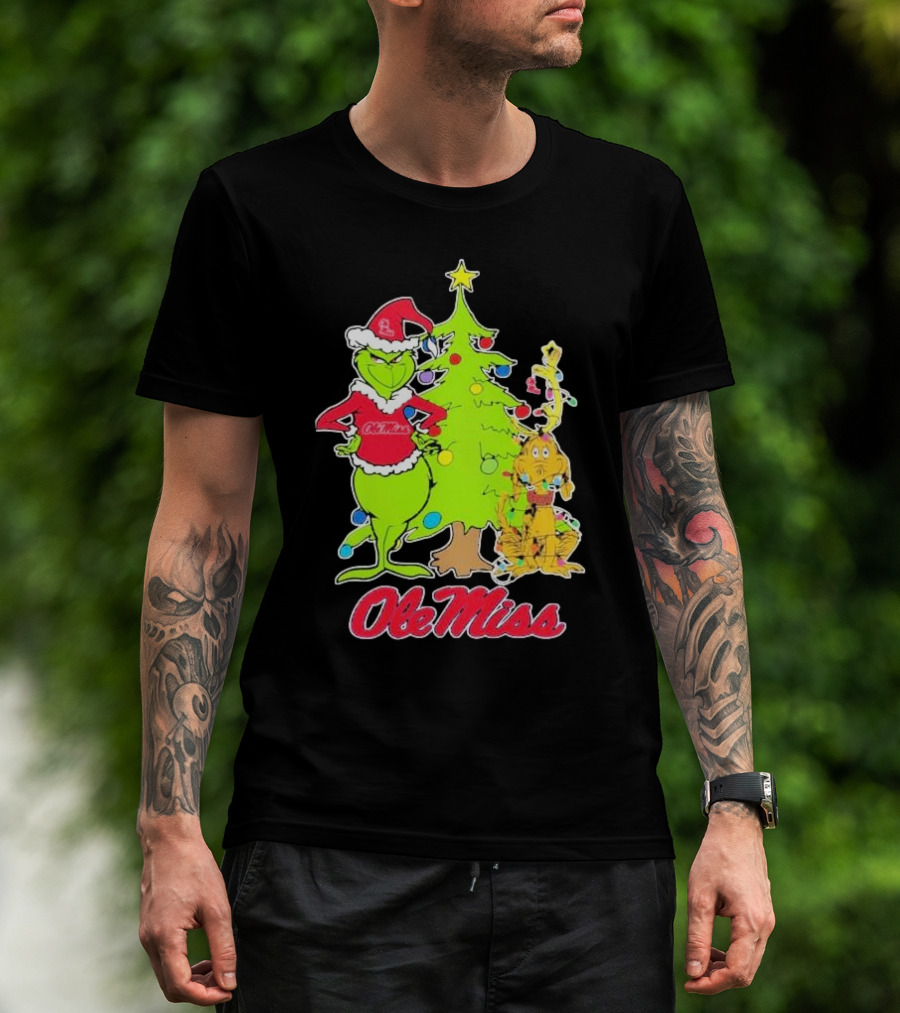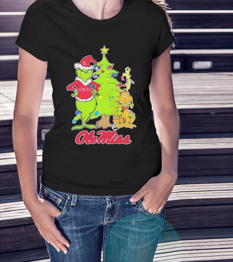 Ole Miss Rebels Grinch And Max Dog Christmas Tree T-Shirt
