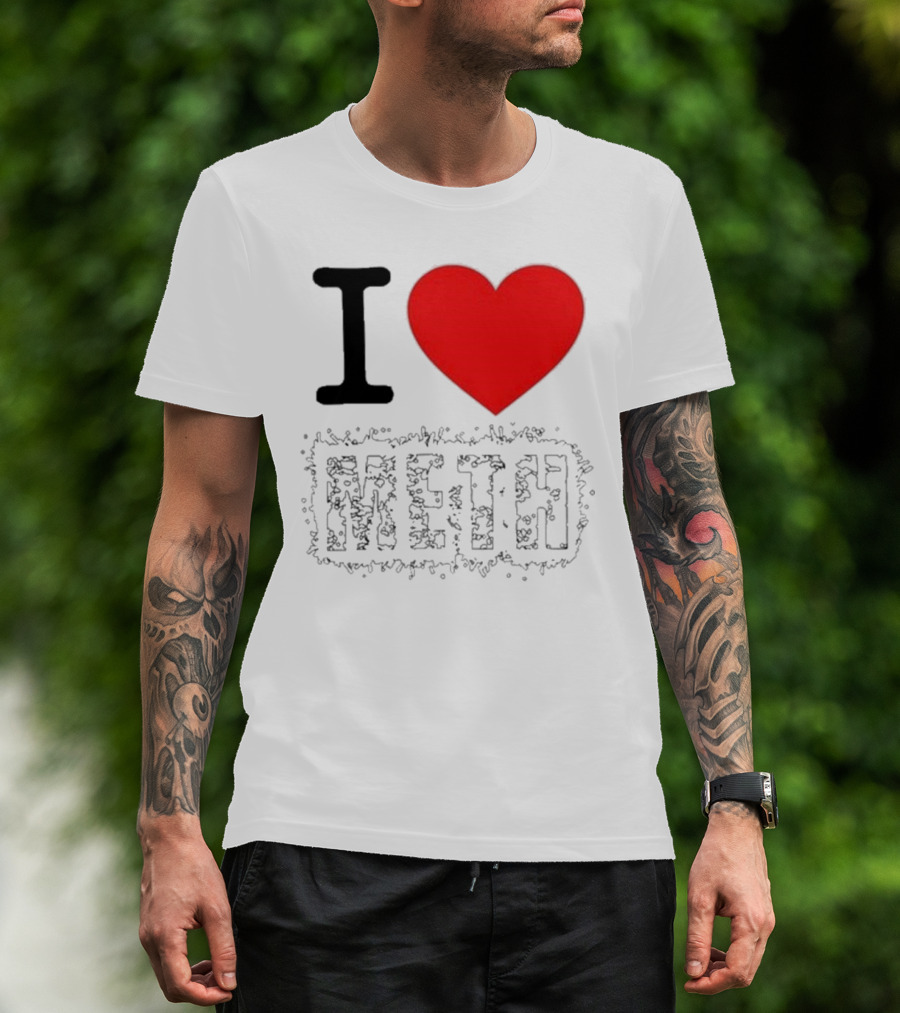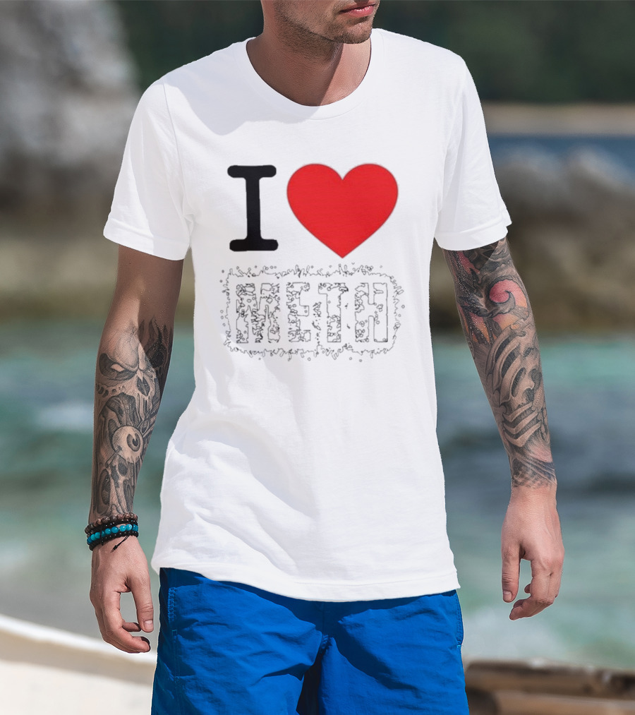 The I Heart Meth T-shirt is designed for everyday wear and a consistent fit. Fabric is pre-shrunk ring-spun cotton with durable stitching. See the size chart below for exact measurements.