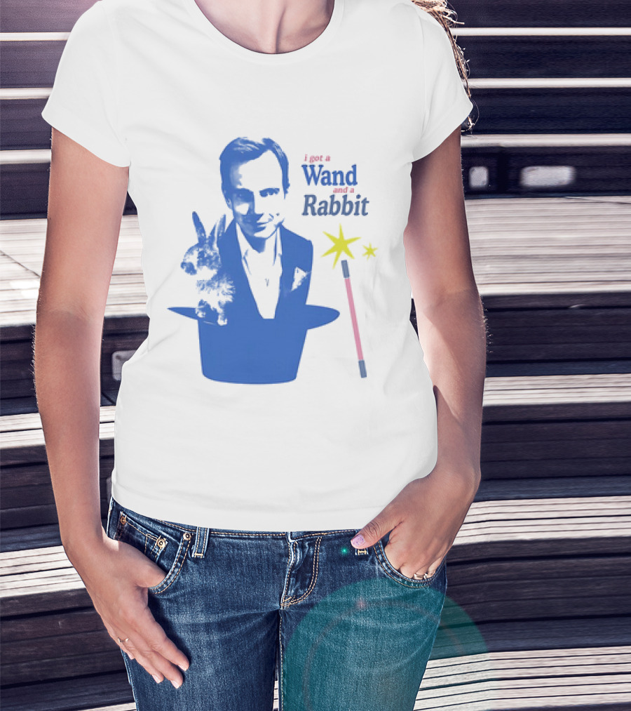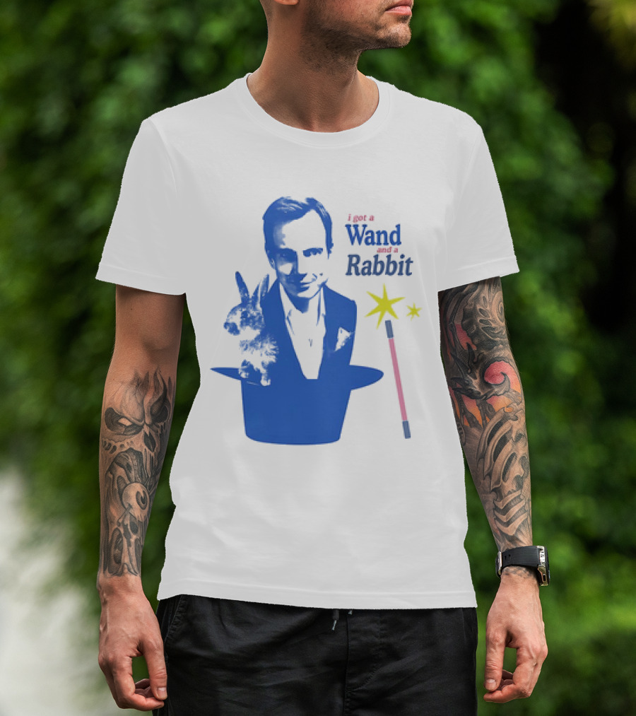 The Will Arnett I Got a Wand and a Rabbit Magic Hat Image T-shirt is designed for everyday wear and a consistent fit. Fabric is pre-shrunk ring-spun cotton with durable stitching. See the size chart below for exact measurements.