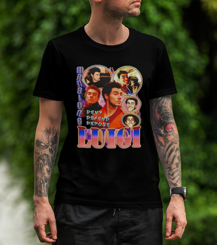 The Mansion Party Luigi Deny Defend Depose T-shirt is designed for everyday wear and a consistent fit. Fabric is pre-shrunk ring-spun cotton with durable stitching. See the size chart below for exact measurements.