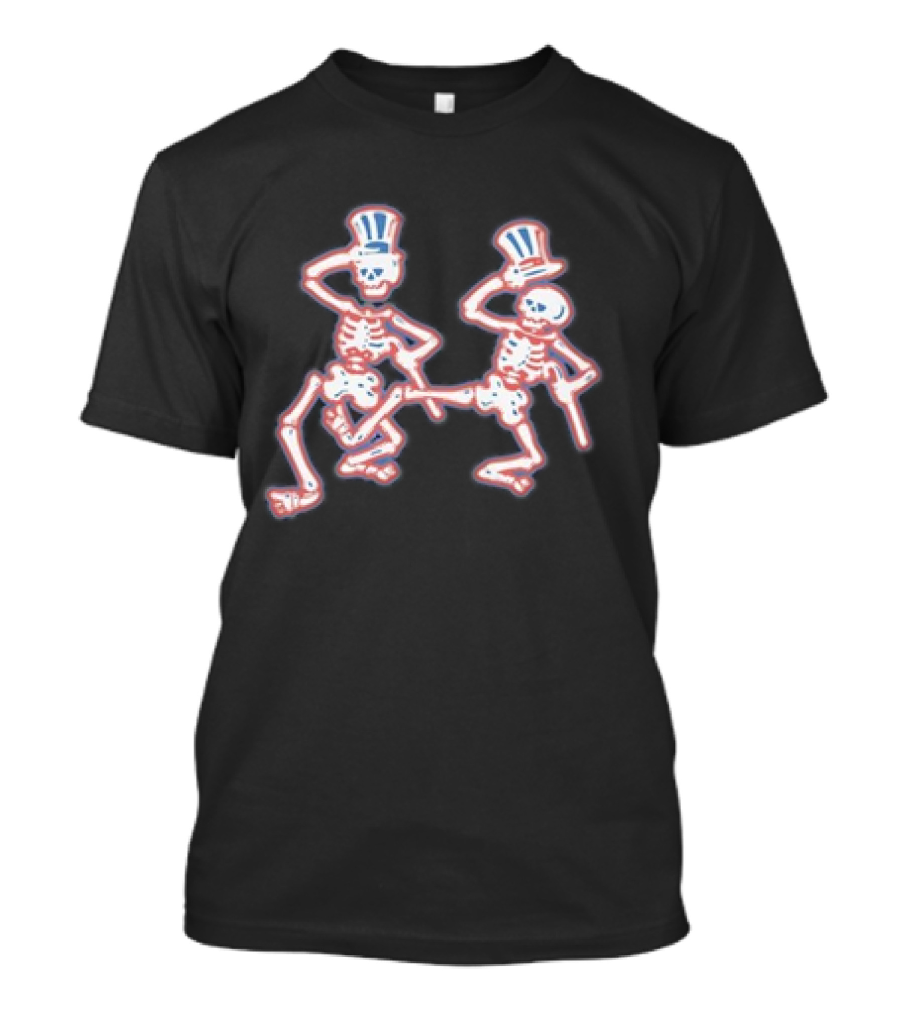 The Grateful Dead Top Hat Dancing Skeletons Crewneck T-shirt is designed for everyday wear and a consistent fit. Fabric is pre-shrunk ring-spun cotton with durable stitching. See the size chart below for exact measurements.