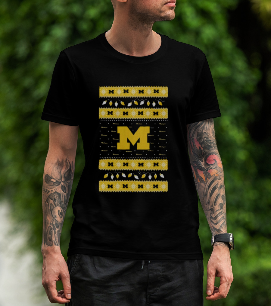 Michigan Wolverines Ugly Christmas Sweater Lights T-Shirt
