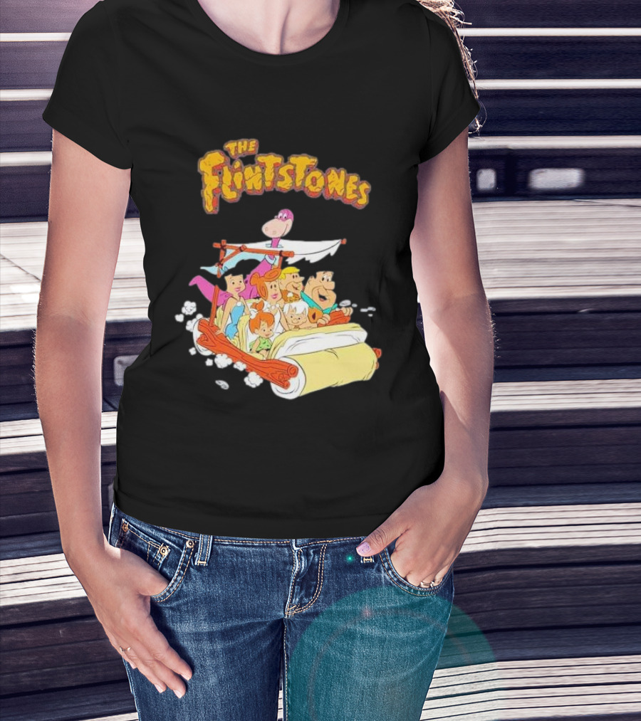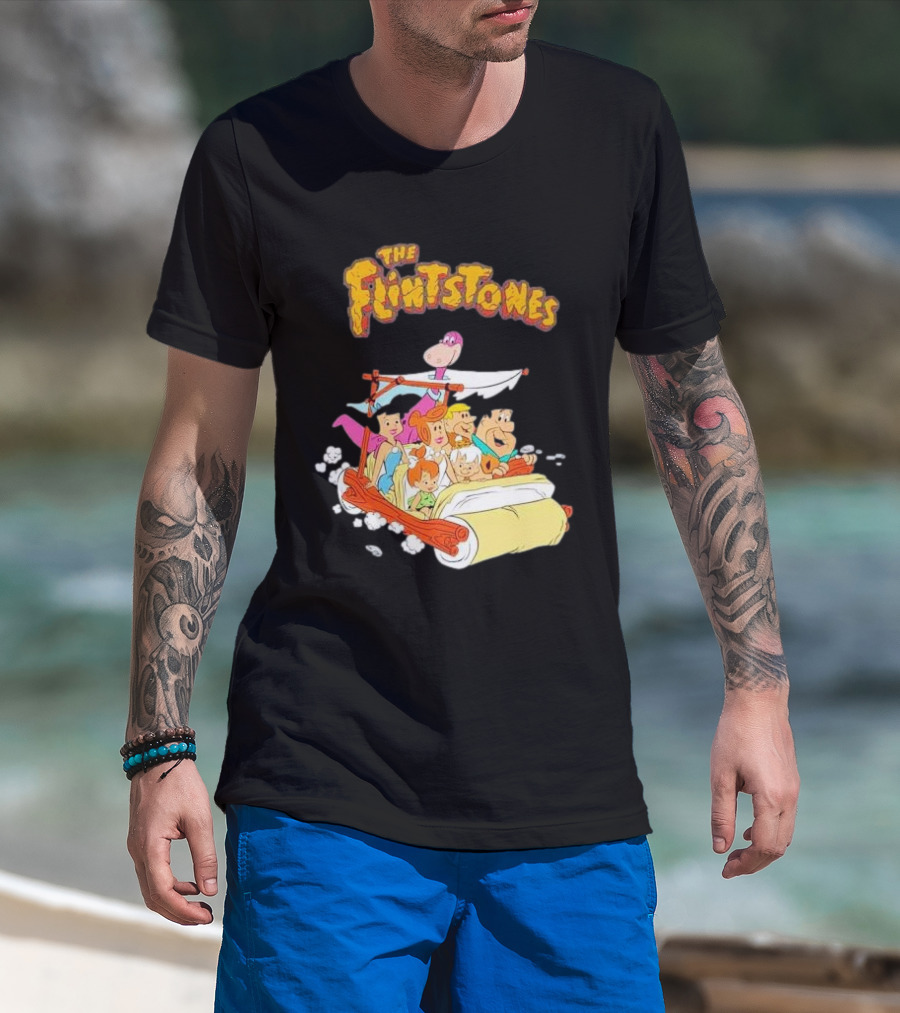 The Flintstones Family Adventure In Iconic Prehistoric Car T-Shirt