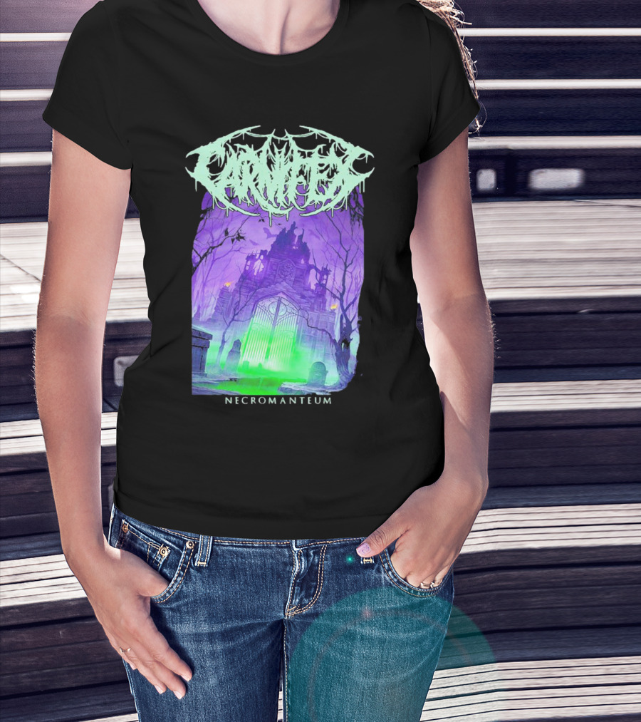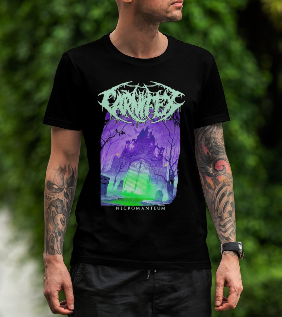 Carnifex Necromanteum Haunted Gothic Castle With Glowing Green And Purple Portal T-Shirt