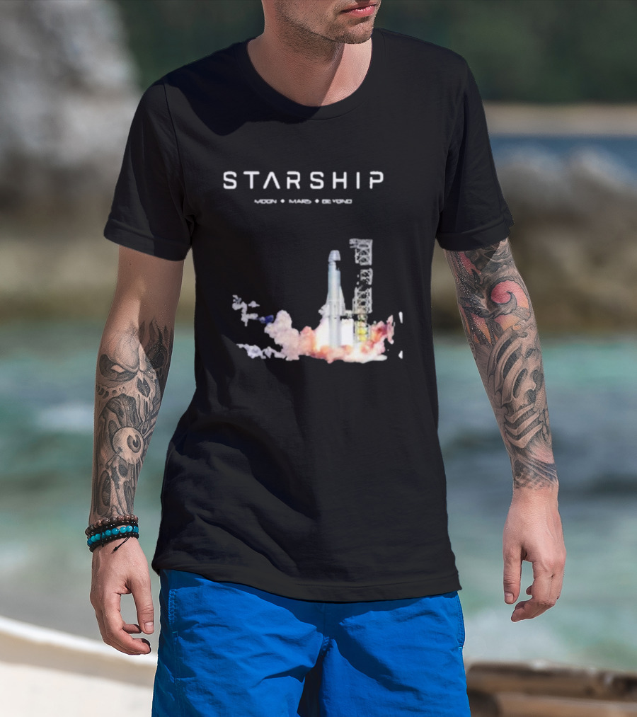 Starship Moon Mars Beyond 2025 Launch Rocket Vision T-Shirt