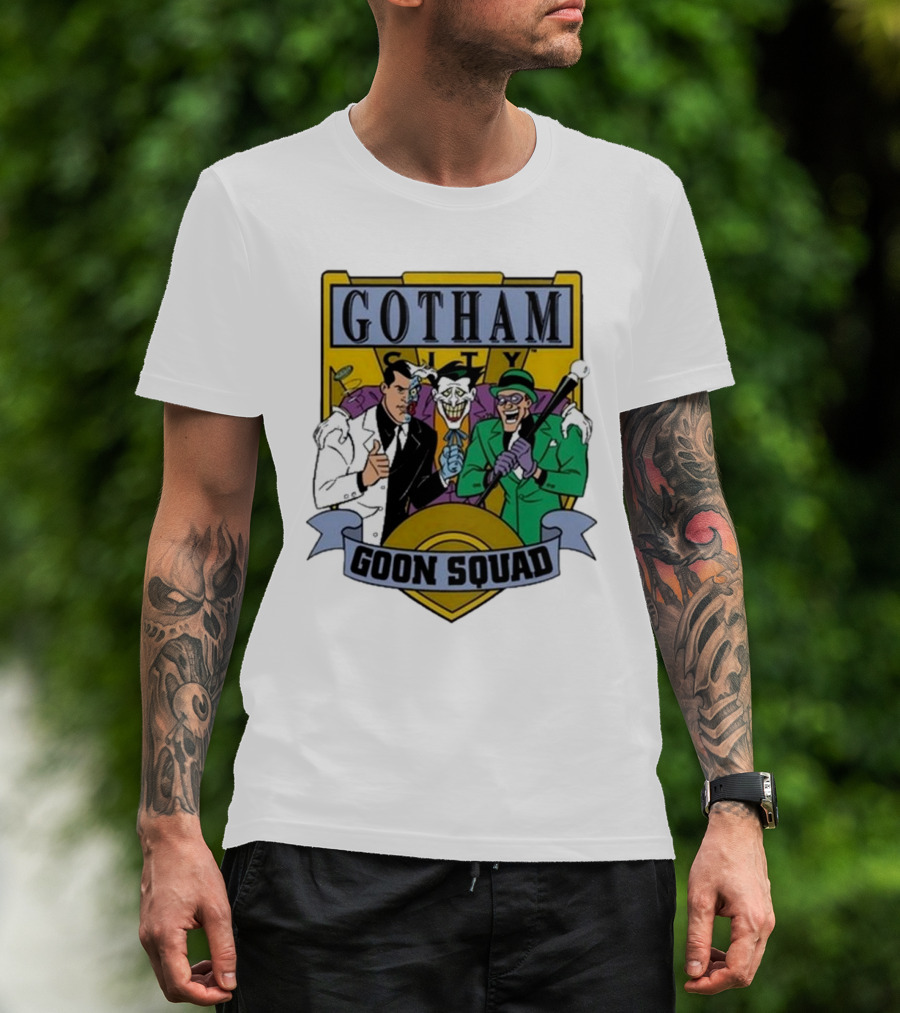Gotham City Goon Squad Joker Riddler Two-Face Badge T-Shirt