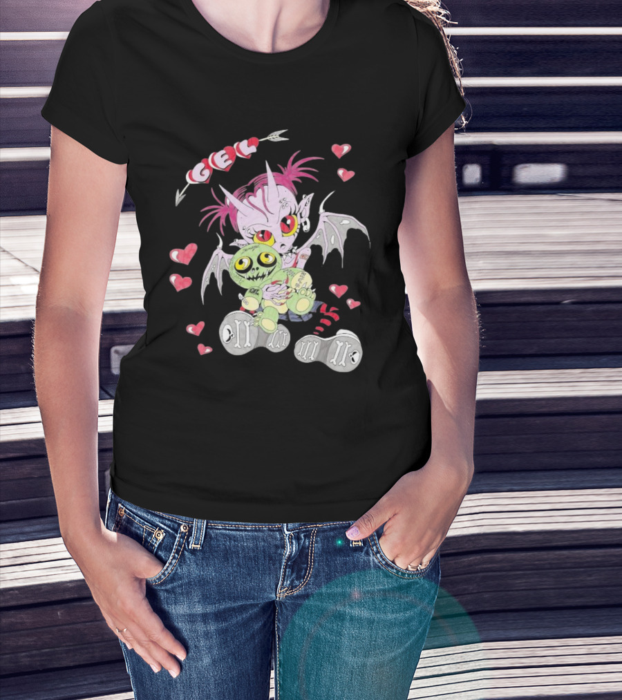 Gelhardcore Turbo Bat Creature Holding Plush Surrounded By Hearts T-Shirt