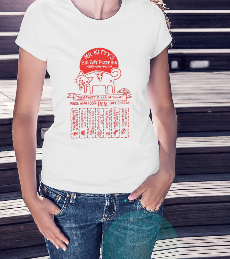 Mr Kitty's Big Gay Pizzeria The Gayest Pizza In Town Made With 100% Real Gay Cheese T-Shirt