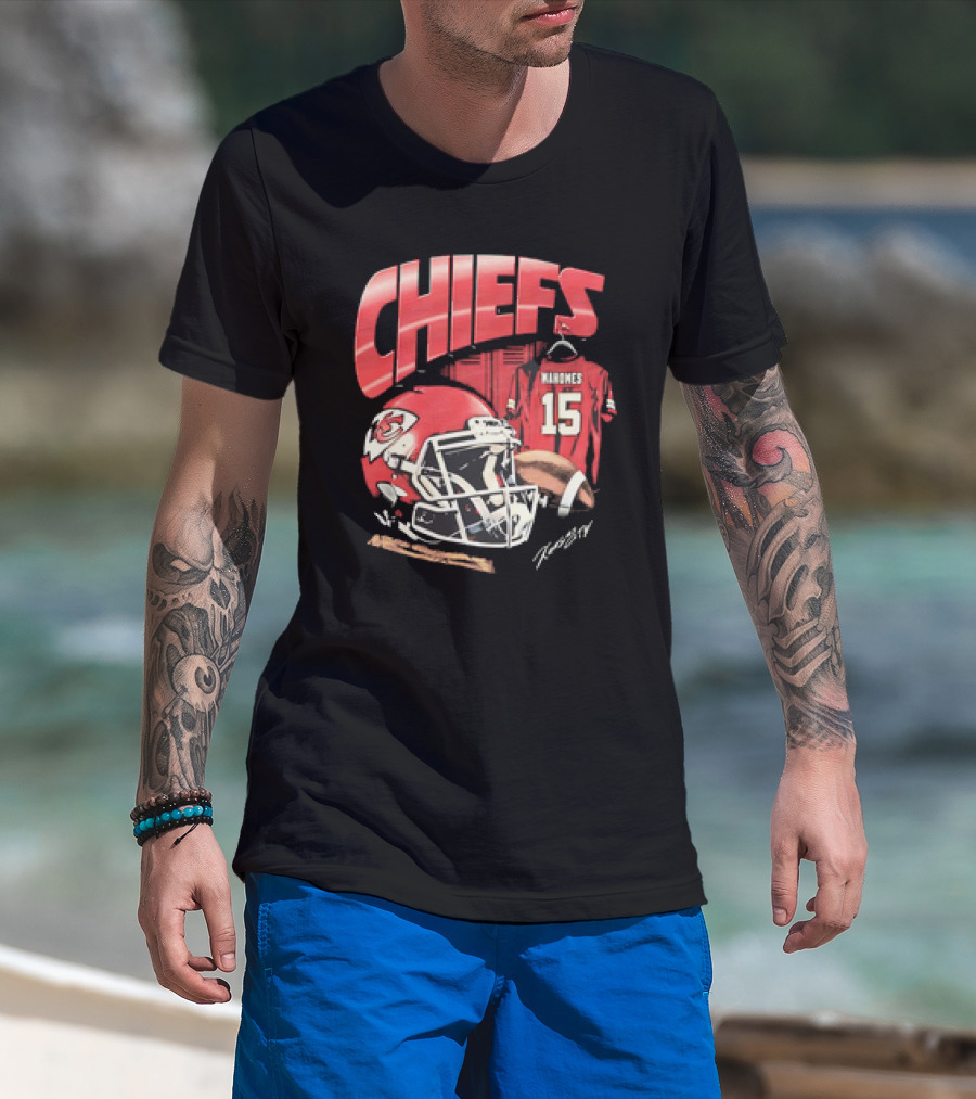 Kansas City Chiefs Patrick Mahomes 15 NFL Helmet Jersey Chiefs T-Shirt