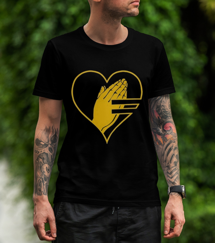 God Is Love Heart Praying Hands Yellow Equality T-Shirt