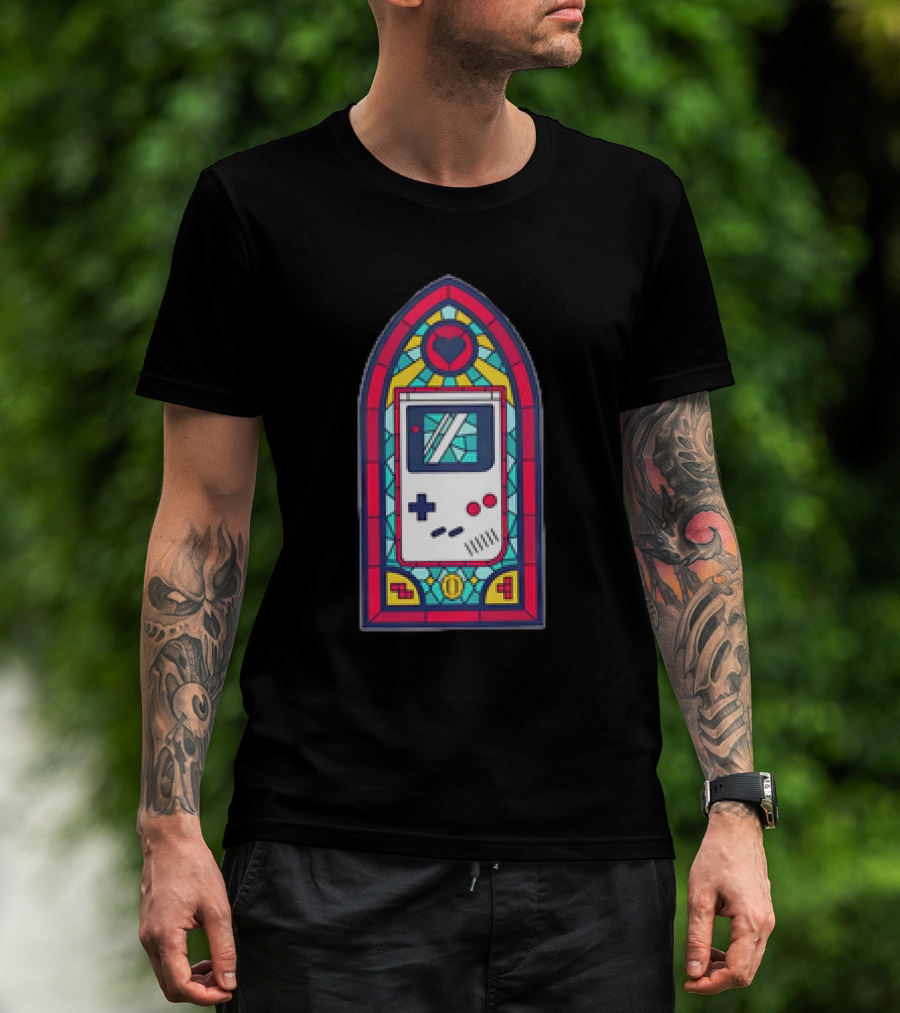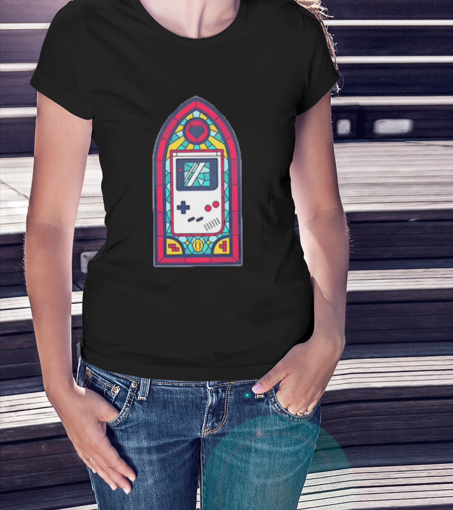 8-Bit Handheld Game Console Stained Glass Window Art With Heart T-Shirt