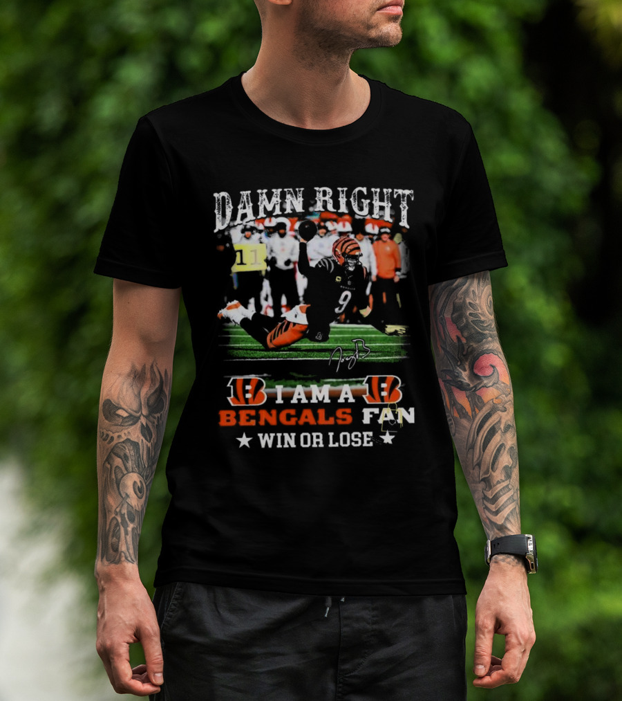 Damn Right I Am A Bengals Fan Win Or Lose Joe Burrow Signatures T-Shirt