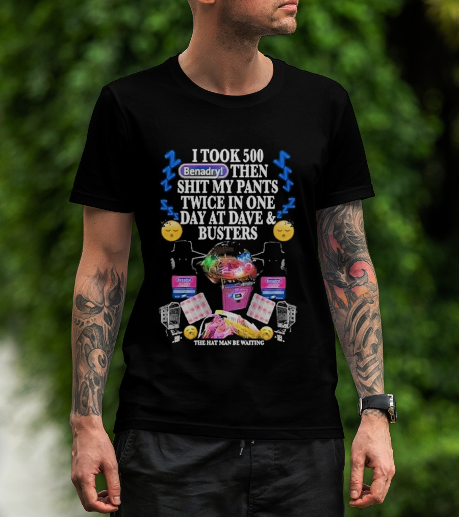 I Took 500 Benadryl Shit My Pants Twice At Dave And Busters Hat Man Waiting T-Shirt