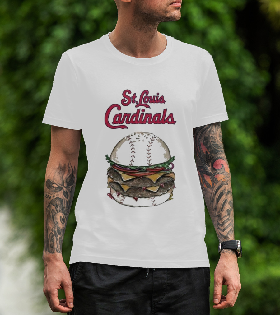 The St. Louis Cardinals Baseball Burger T-shirt is designed for everyday wear and a consistent fit. Fabric is pre-shrunk ring-spun cotton with durable stitching. See the size chart below for exact measurements.