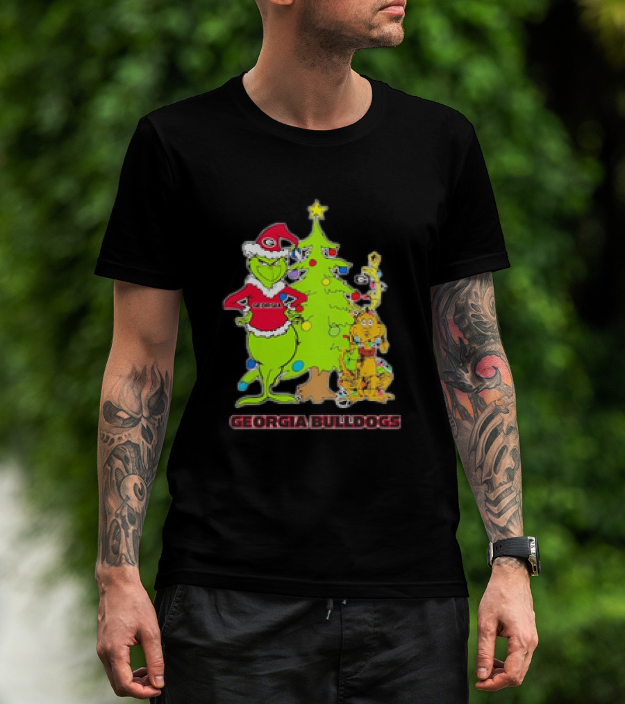 Georgia Bulldogs Grinch Christmas Tree Football T-Shirt
