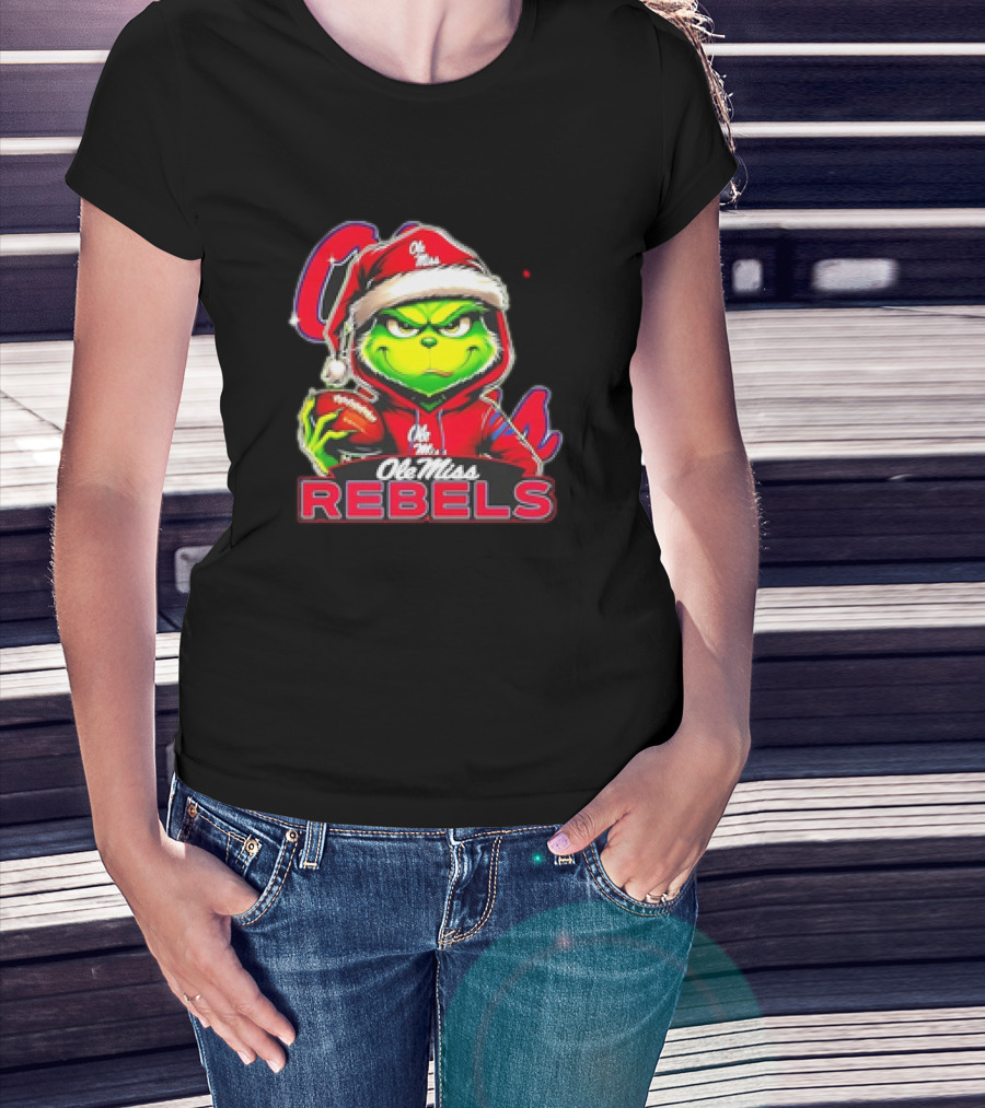 Grinch Ole Miss Rebels Christmas Football Santa T-Shirt