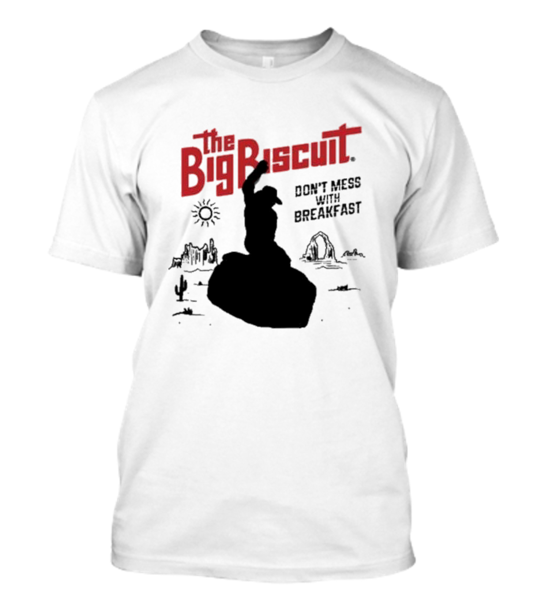 The Big Biscuit Don't Mess With Breakfast 2025 Cowboy Desert Silhouette Sun Cactus T-Shirt