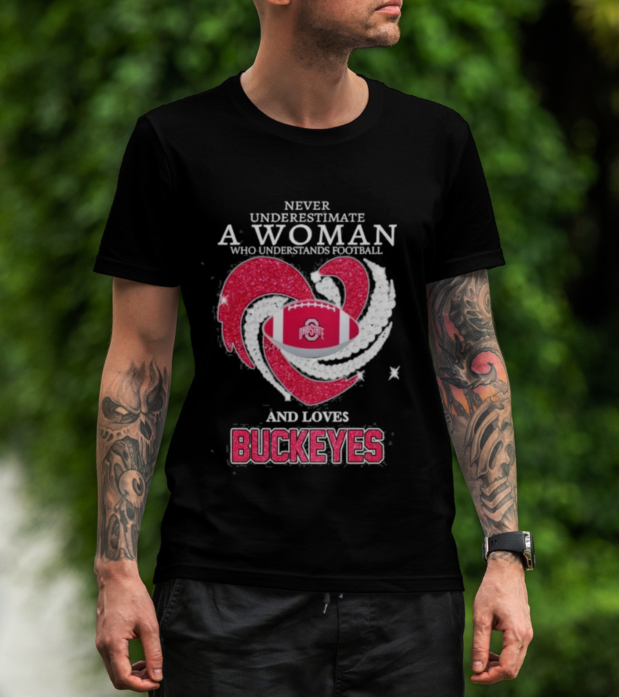 Never Underestimate A Woman Who Understands Football And Loves Ohio State Buckeyes Football Lover T-Shirt