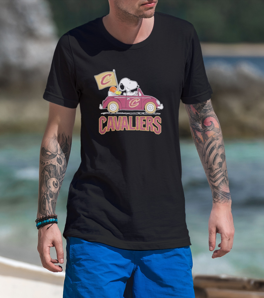 Snoopy Cavaliers Car With Basketball And Flag T-Shirt