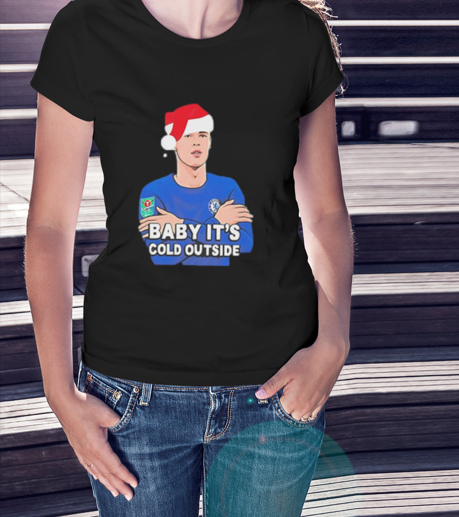 Baby It's Cold Outside Santa Hat Footballer In Blue T-Shirt