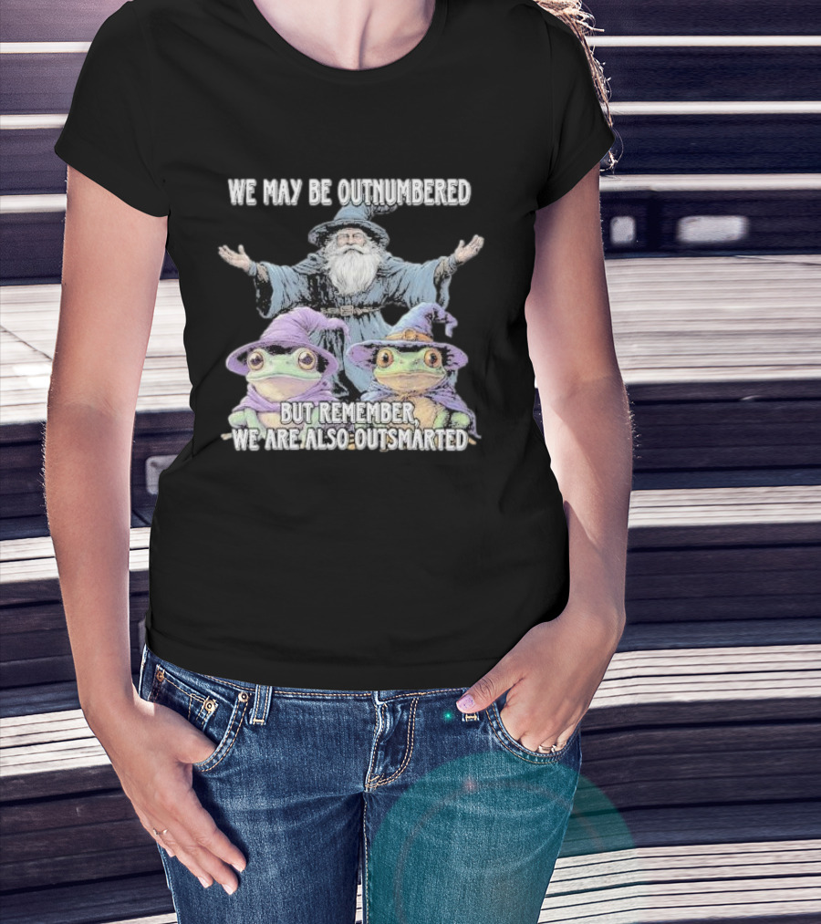 We May Be Outnumbered But Remember We Are Also Outsmarted Wizard And Frogs In Purple Hats T-Shirt