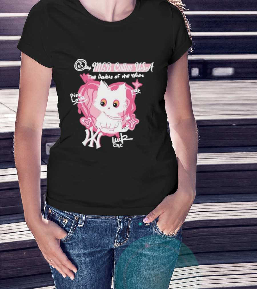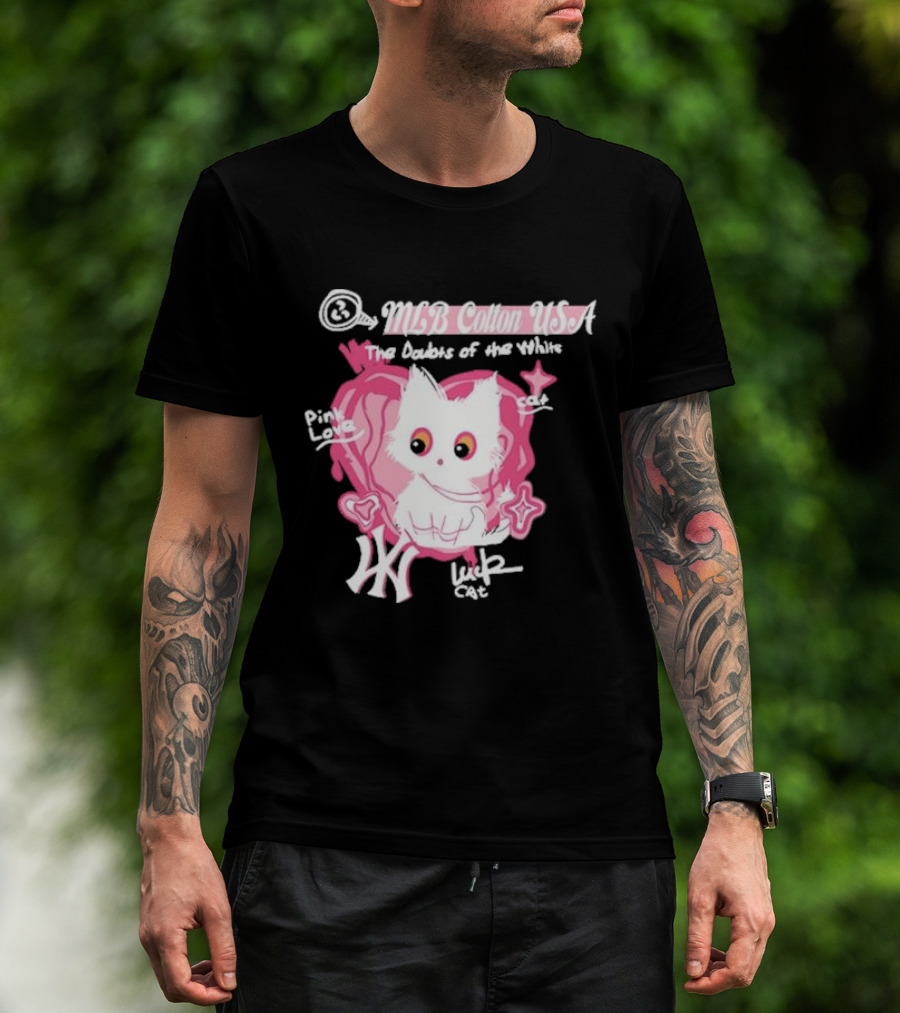 MLB Cotton USA The Doubts Of The White Cat Pink Love Lucky Cat T-Shirt