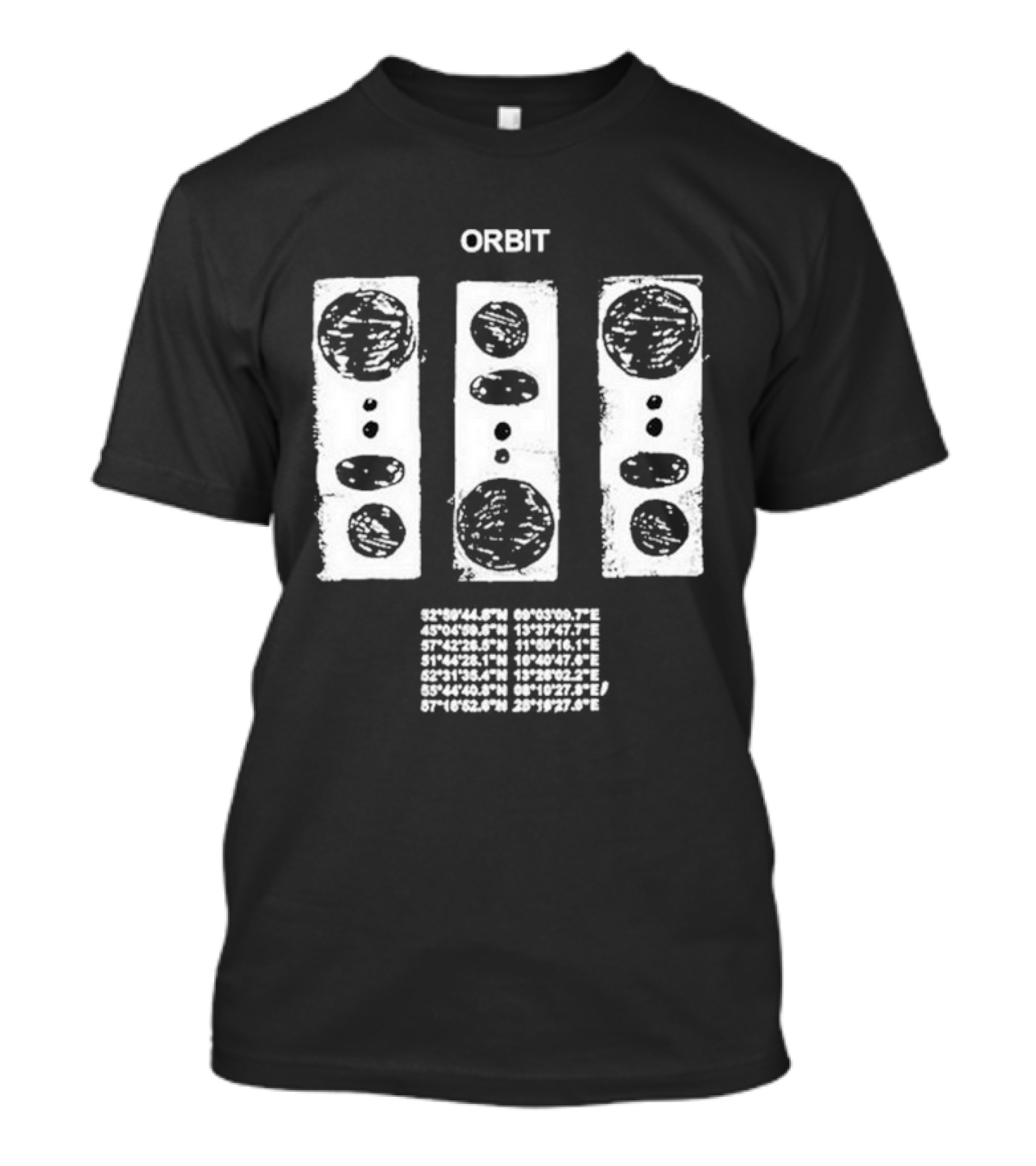 The ORBIT Planet Coordinates Speaker T-shirt is designed for everyday wear and a consistent fit. Fabric is pre-shrunk ring-spun cotton with durable stitching. See the size chart below for exact measurements.