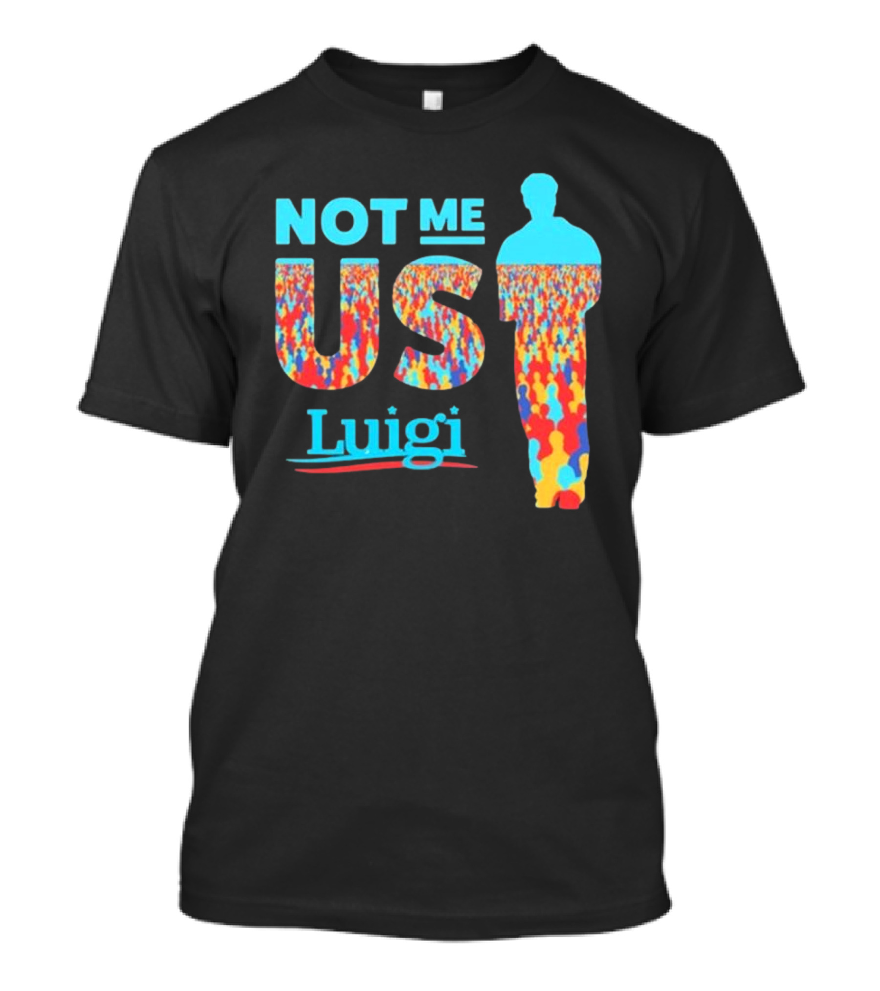 The Not Me Us Luigi Meme-Industrial Complex Multicolor T-shirt is designed for everyday wear and a consistent fit. Fabric is pre-shrunk ring-spun cotton with durable stitching. See the size chart below for exact measurements.
