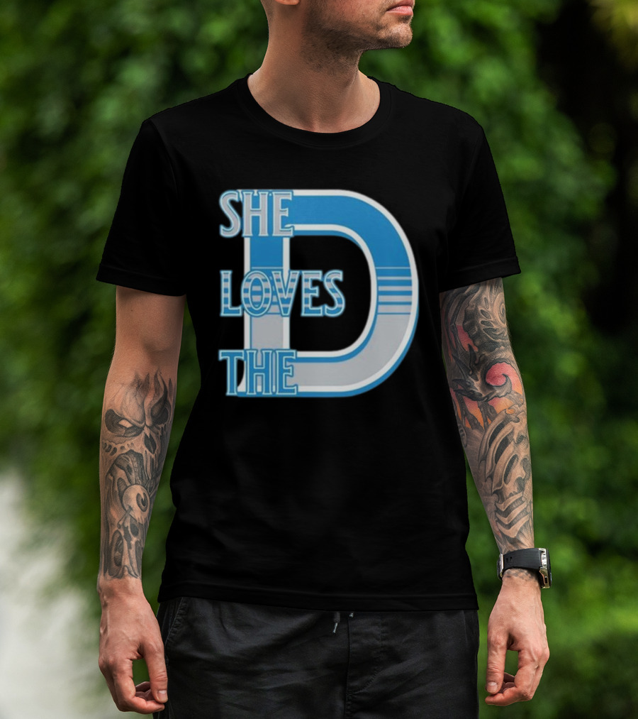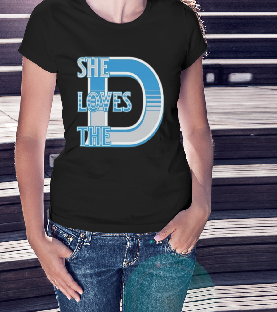 She Loves The D Detroit Blue Striped Lettering T-Shirt