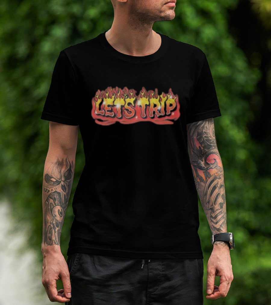 The Let's Trip Embers Fire Flames Text T-shirt is designed for everyday wear and a consistent fit. Fabric is pre-shrunk ring-spun cotton with durable stitching. See the size chart below for exact measurements.