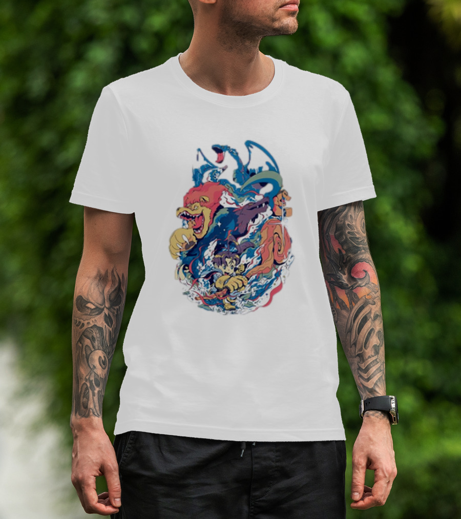 The Quest 64 Magic 64 Elemental Beasts T-shirt is designed for everyday wear and a consistent fit. Fabric is pre-shrunk ring-spun cotton with durable stitching. See the size chart below for exact measurements.
