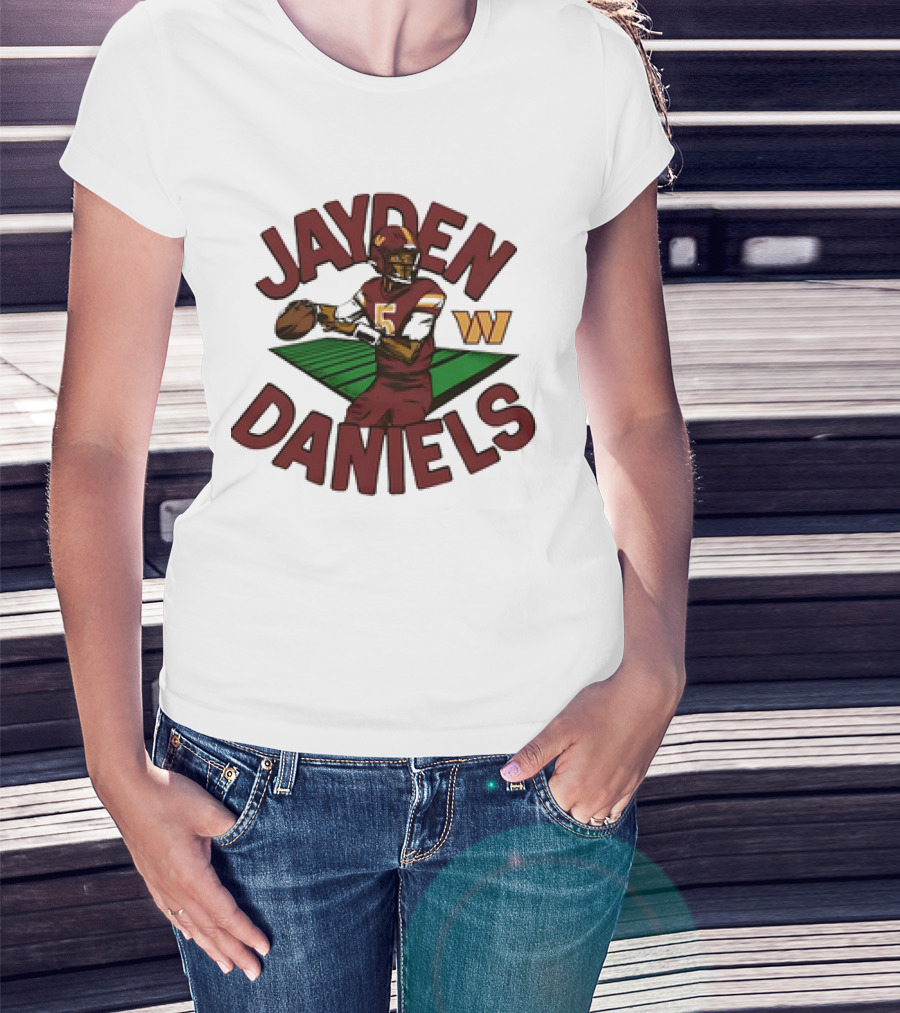 Washington Commanders Jayden Daniels Cartoon Quarterback W T-Shirt