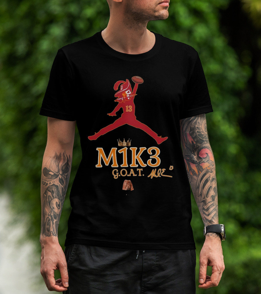 M1K3 G.O.A.T. Mike Evans 13 Buccaneers Signature Crown Football T-Shirt