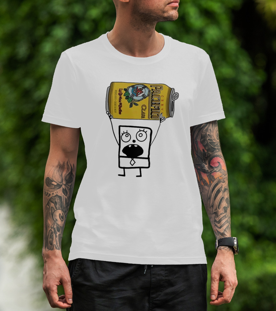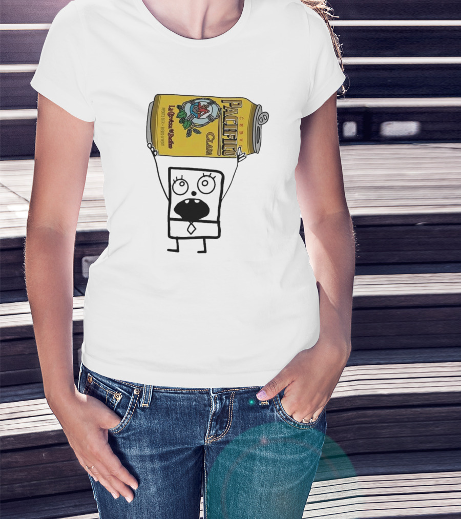 Doodlebob Holding Pacifico Clara La Cerveza Del Pacifico Beer Can T-Shirt