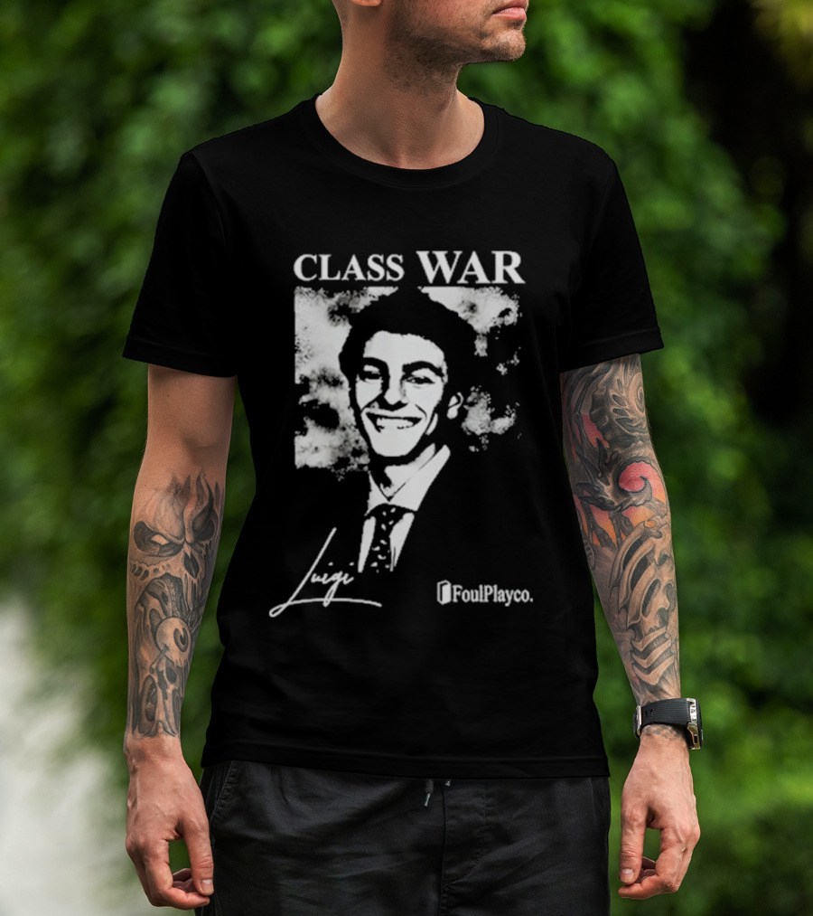 The Class War Luigi FoulPlayco Signature T-shirt is designed for everyday wear and a consistent fit. Fabric is pre-shrunk ring-spun cotton with durable stitching. See the size chart below for exact measurements.