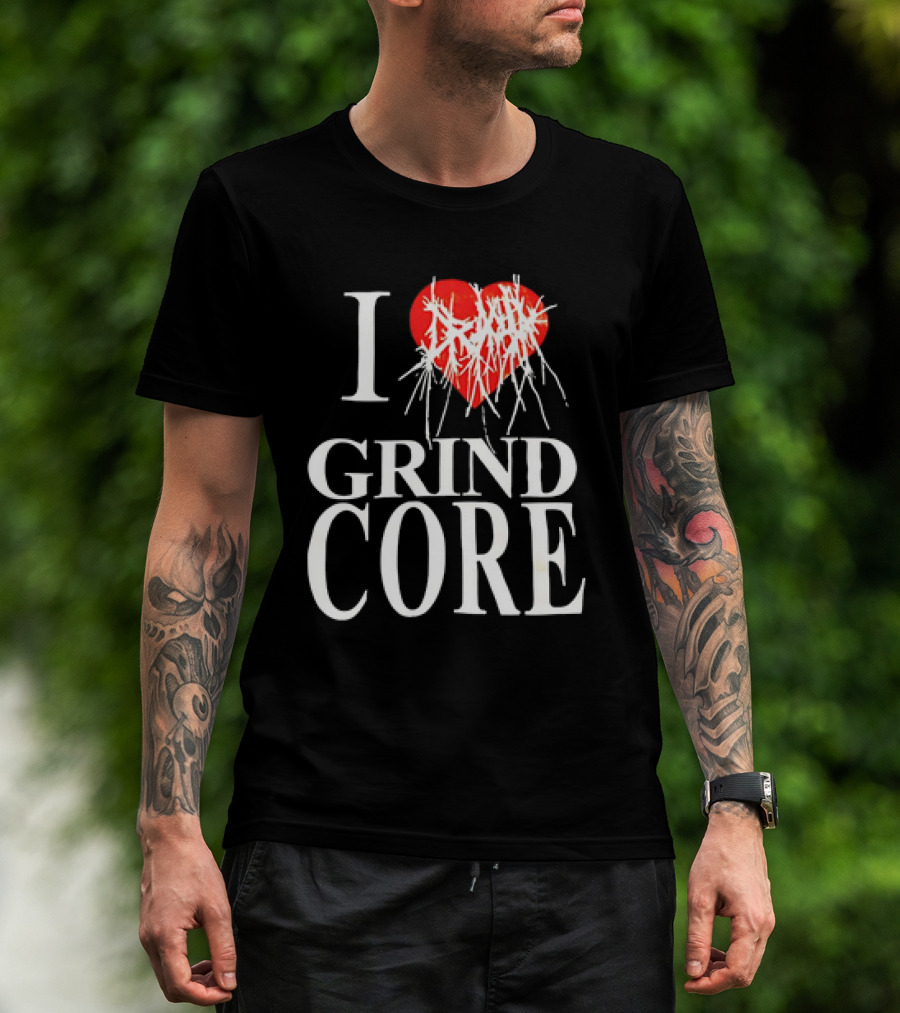 I Love Grind Core Heart Symbol With Band Logo T-Shirt