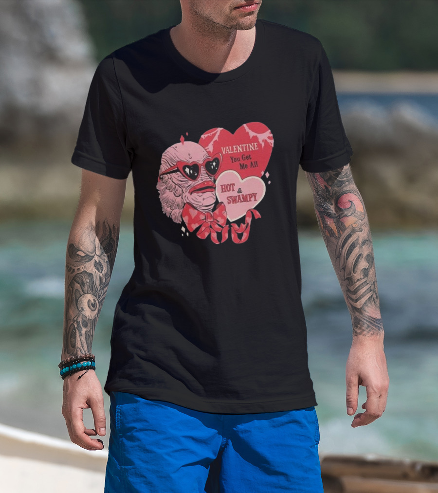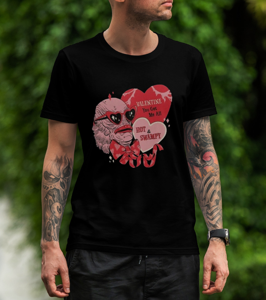Valentine You Get Me All Hot And Swampy Creature With Heart Sunglasses And Bow Tie T-Shirt