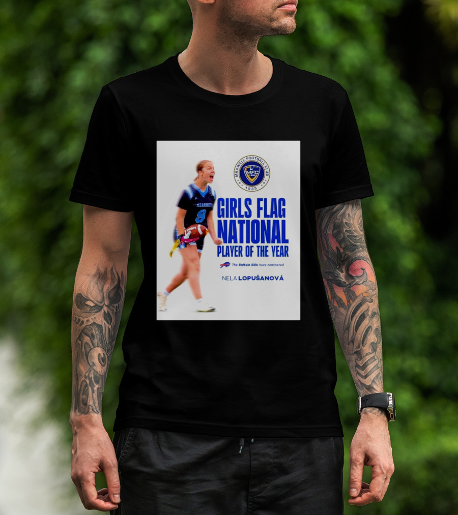 Merrill Football Club Girls Flag National Player Of The Year Nela Lopusanova Buffalo Bills Nomination T-Shirt