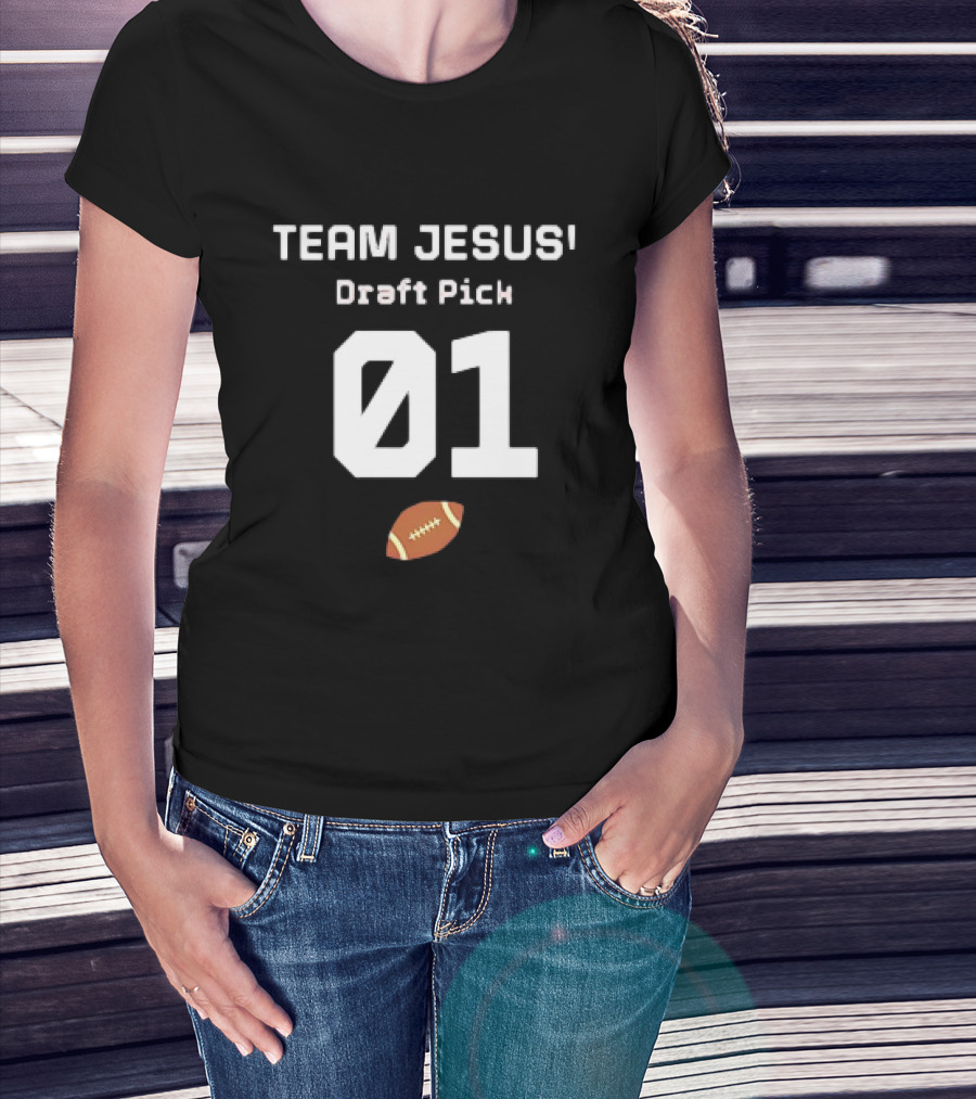 The Team Jesus Draft Pick 01 Football T-shirt is designed for everyday wear and a consistent fit. Fabric is pre-shrunk ring-spun cotton with durable stitching. See the size chart below for exact measurements.