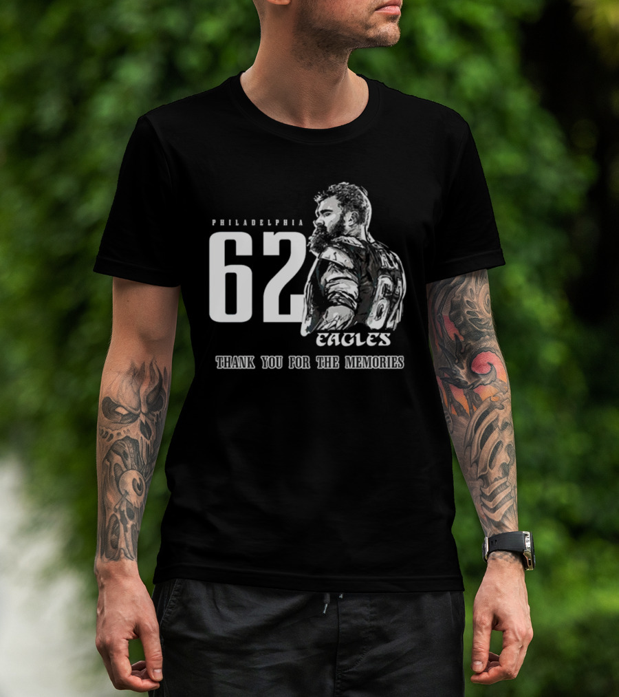 The Philadelphia Eagles 62 Jason Kelce Thank You for the Memories Signature 2025 T-shirt is designed for everyday wear and a consistent fit. Fabric is pre-shrunk ring-spun cotton with durable stitching. See the size chart below for exact measurements.