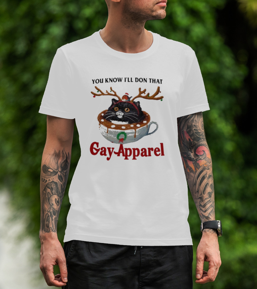 You Know I'll Do That Gay Apparel Christmas Cat In Reindeer Antlers Cup T-Shirt