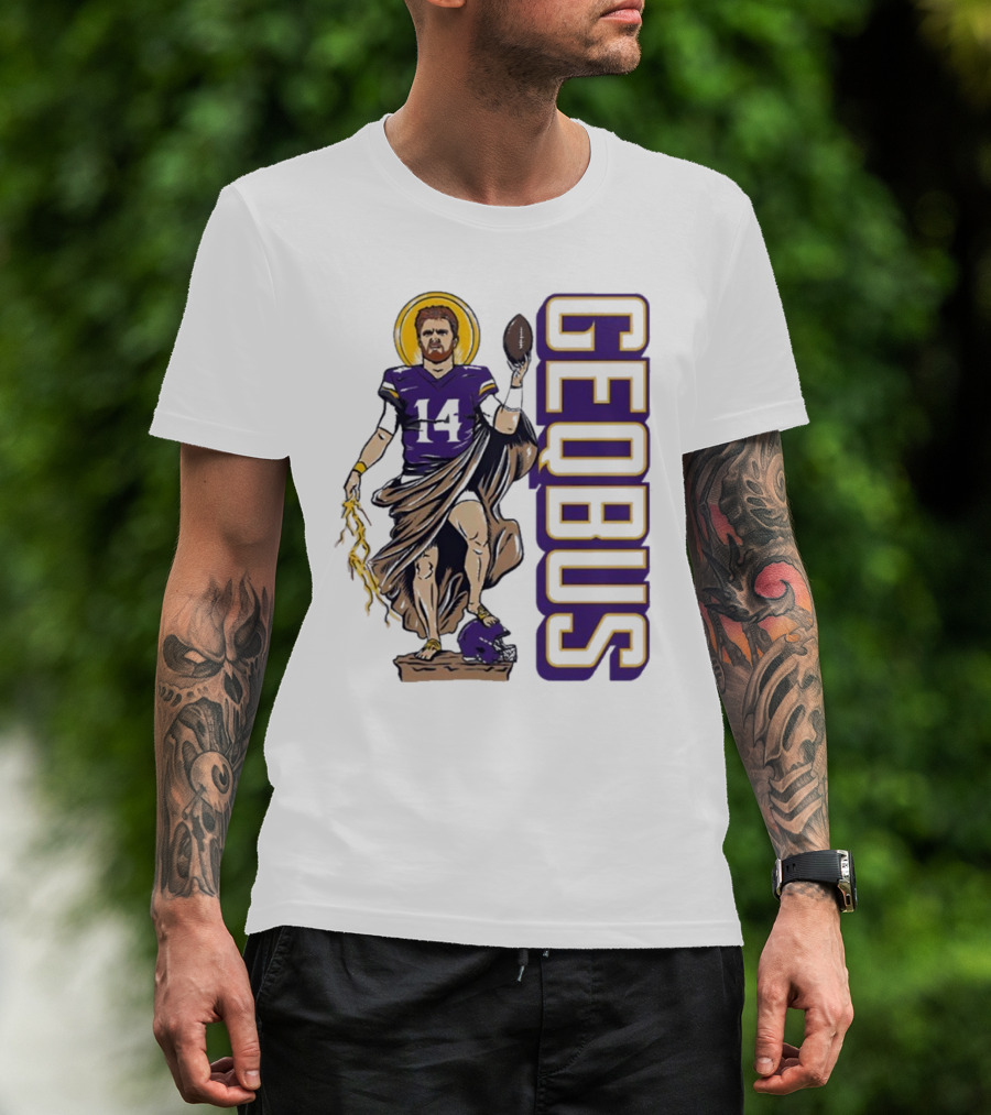The Sam Darnold GEQBUS Football Icon Blessed Athletic T-shirt is designed for everyday wear and a consistent fit. Fabric is pre-shrunk ring-spun cotton with durable stitching. See the size chart below for exact measurements.