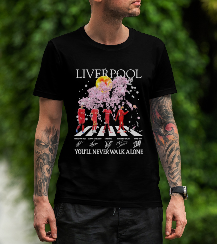 Liverpool You’ll Never Walk Alone Cherry Blossoms Bloom Virgil Van Dijk Dominik Szoboszlai Luis Diaz Mohamed Salah Arne Slot T-Shirt