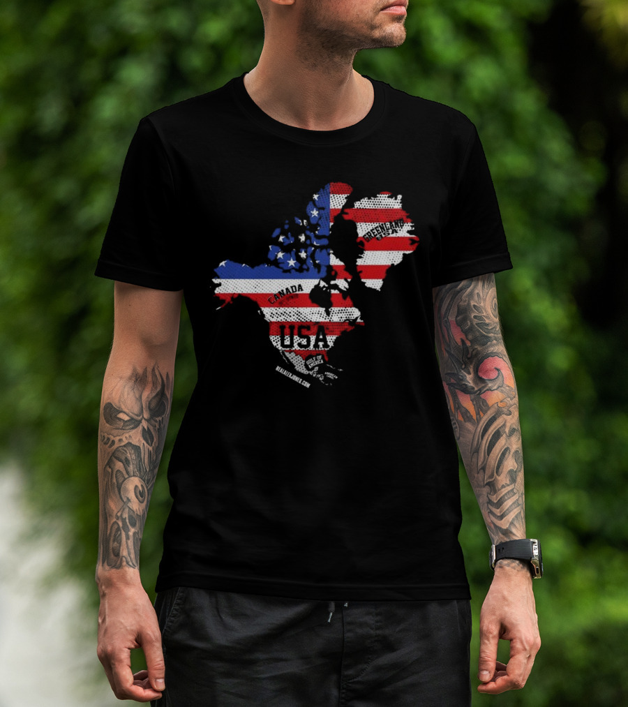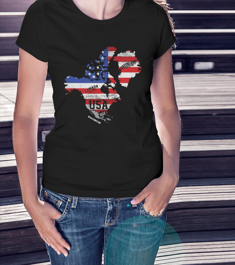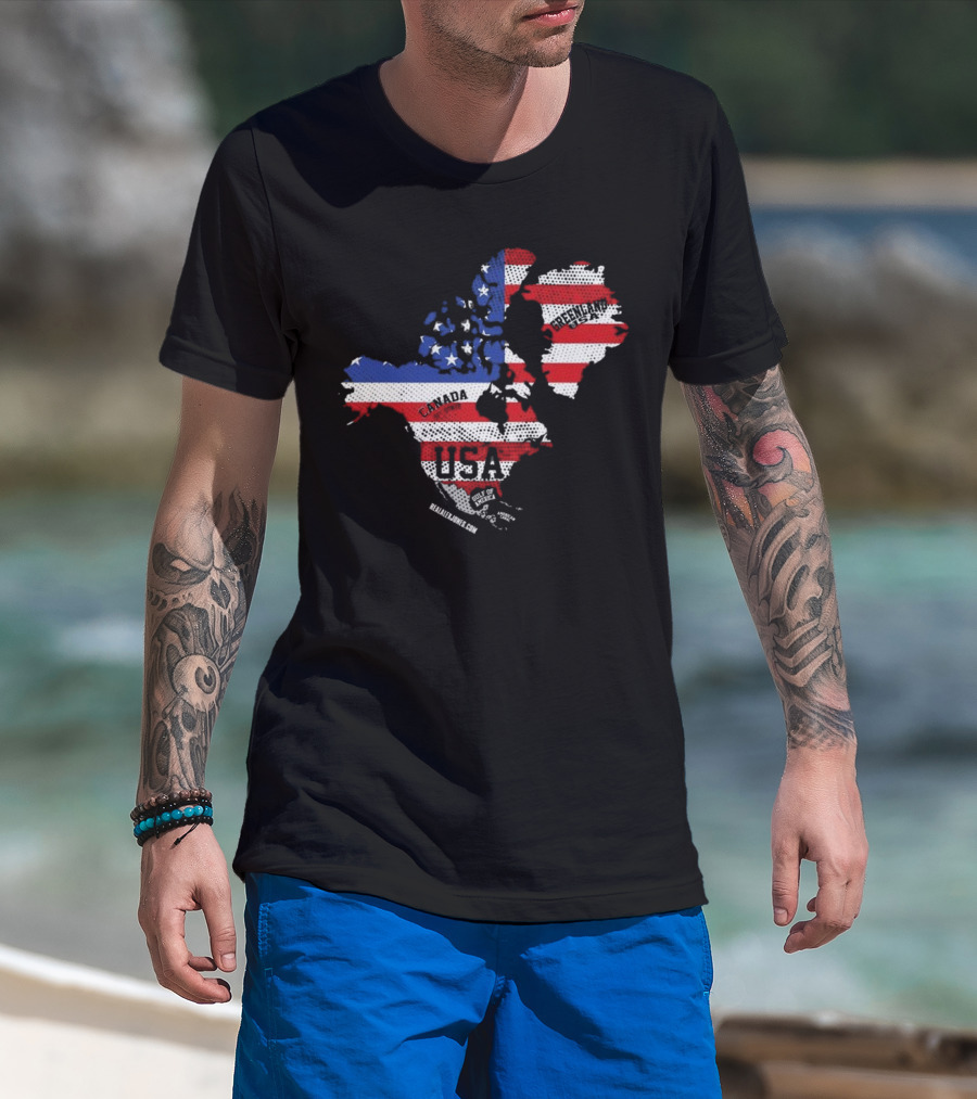 USA Canada Greenland Flag Map Bold Lines T-Shirt