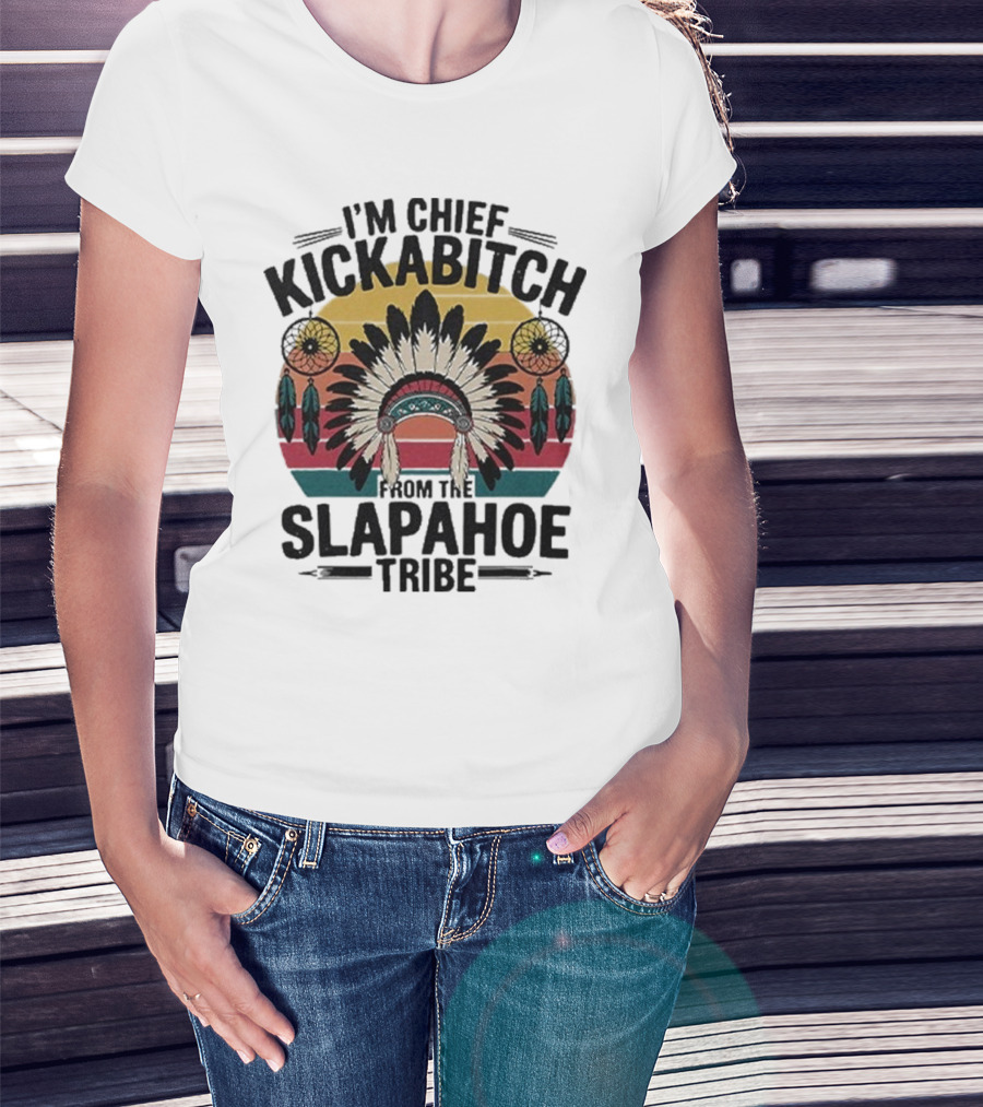 I'm Chief Kickabitch From The Slapahoe Tribe Dreamcatcher Native Headdress Retro Sunburst T-Shirt